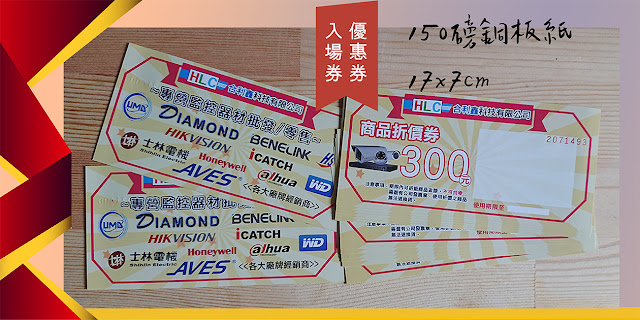 票券-120磅銅板-雙面彩色-流水號+撕線7cm×7cm票券-120磅銅板-雙面彩色-流水號+撕線17cm×7cm票券-120磅銅板-雙面彩色-流水號+撕線17cm×7cm票券-120磅道林-單面彩色-撕線9cm×5.4cm
